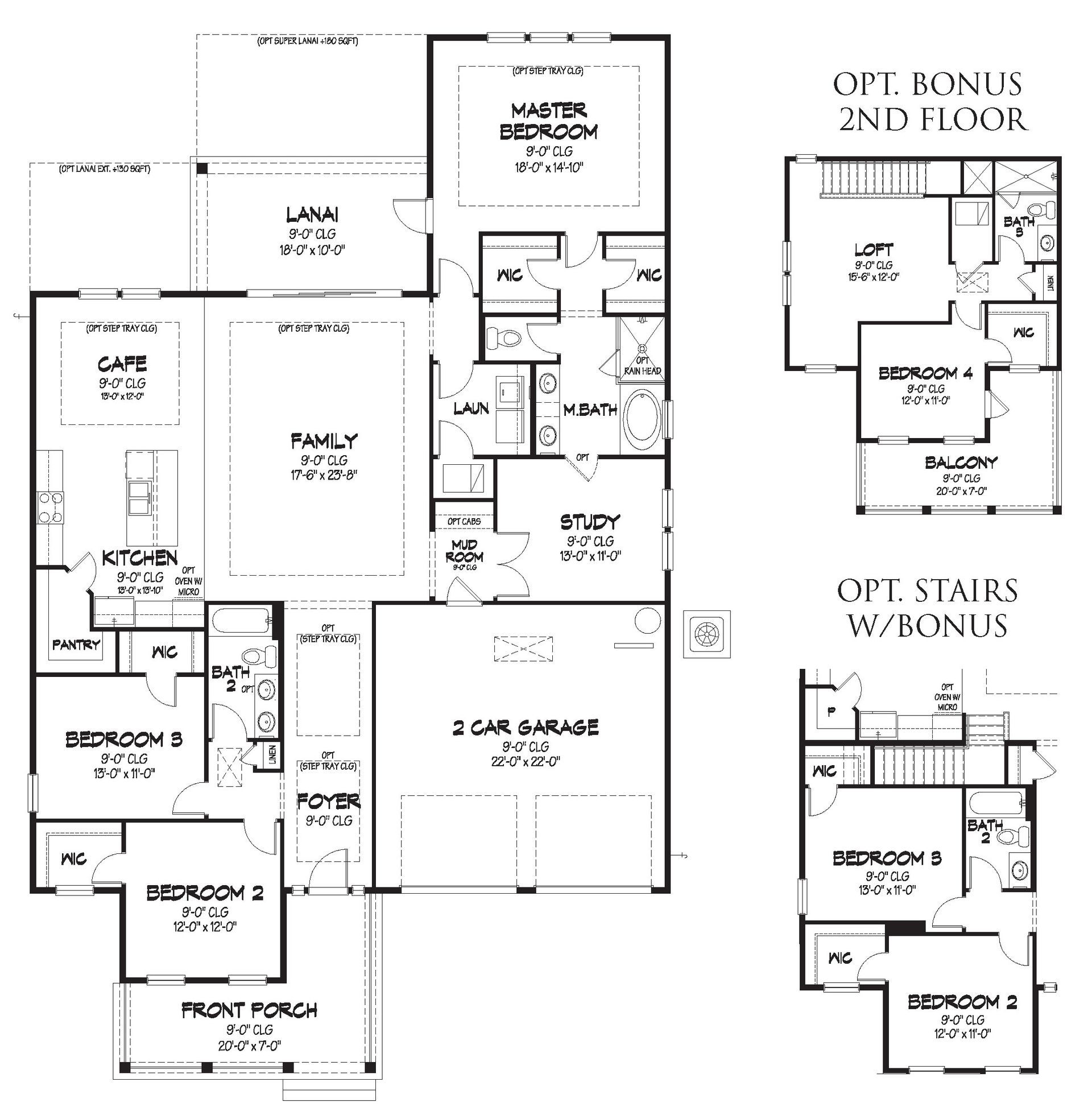 Our Chatsworth home features 3 bedrooms, a study (which can be converted into a 4th bedroom), and a 2-car garage. The kitchen overlooks the family room, creating a perfect space for cooking and entertaining. The deluxe owner’s bath includes a walk-in shower, garden tub, and two spacious walk-in closets. Enjoy relaxing on the charming front porch or covered lanai. Plus, for added flexibility, there is a 2nd-floor bonus room, bedroom, and bath option to customize the home to fit your needs.