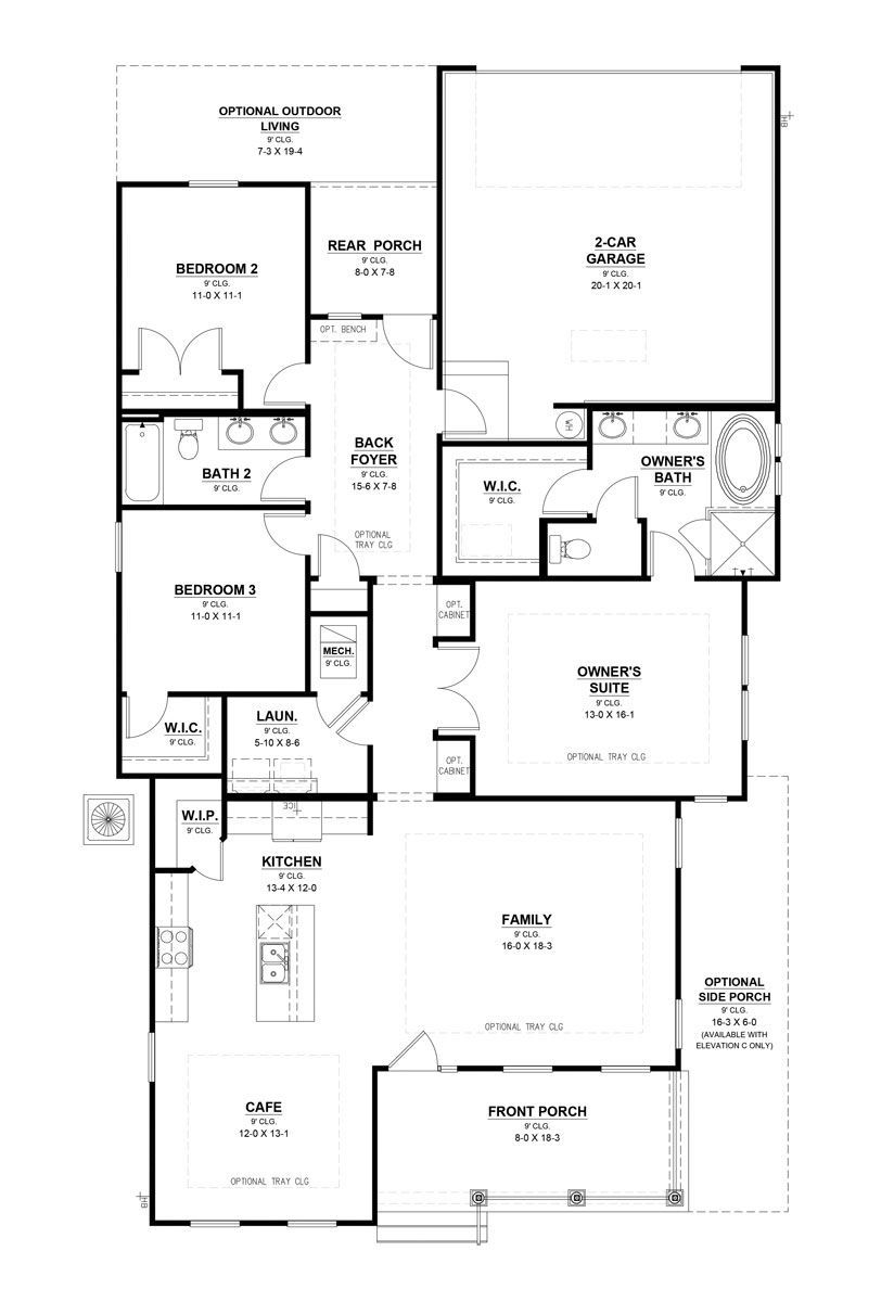 Love spending time outdoors? Our Fairview home features a large front porch with the option to wrap the porch to the side of the home with a second entrance to the family room, as well as, an option for a door from the owner’s suite. This plan also has the option to extend the outdoor living area. The 2-car rear load garage has an entrance to the ‘back’ foyer. Kitchen overlooks the family room and separate eating space. Beautiful solid surface countertops, 42” cabinets, backsplash and tile flooring. Plus, for added flexibility, a bonus room option is available to customize the home to fit your needs.