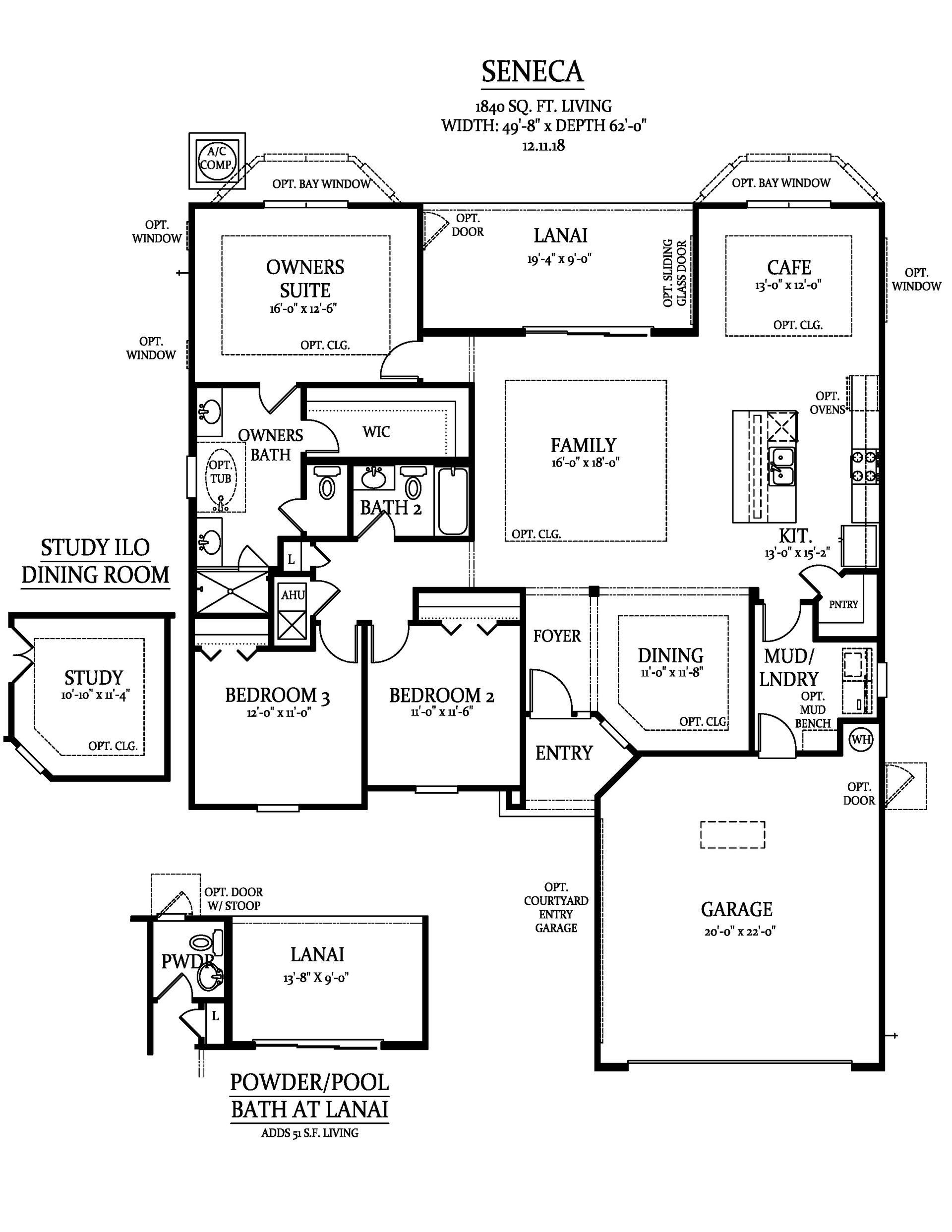 The Seneca floor plan features a deluxe kitchen with large center island overlooking the family room, which opens onto the rear lanai. The kitchen features gorgeous 42'' tall cabinets, backsplash and tile flooring. Three bedrooms and an office space makes this home family friendly. Tray ceilings in the family, and owners suite give this home a distinctive timeless style.